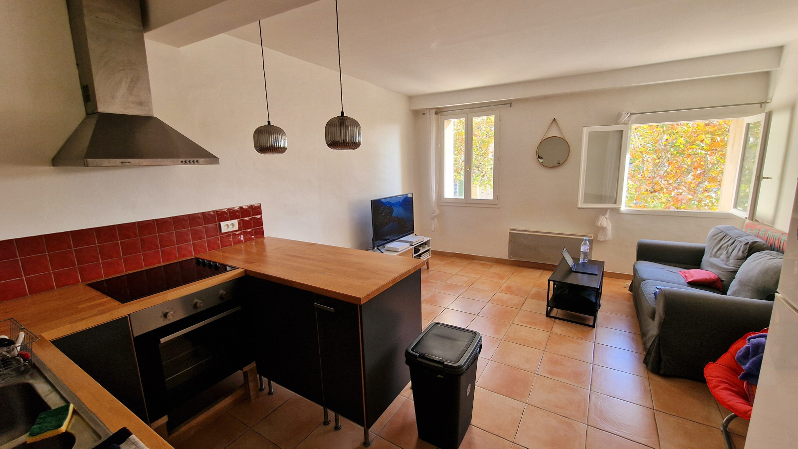- Une pièce de vie avec cuisine ouverte (meublée et équipée) de 20 m²
